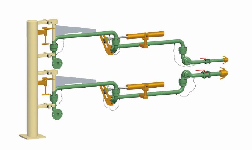- 外臂:可在水平面和垂直面的范圍內(nèi)轉(zhuǎn)動(dòng),主要用于裝卸臂同槽車、槽船調(diào)整對(duì)接工作位置的部件