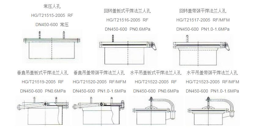 注:由于化工部標(biāo)準(zhǔn)人孔的筒節(jié)都比較薄,一般都要加厚,在選型、訂貨是注明。