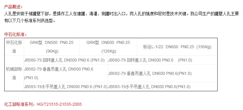 化工部標(biāo)準(zhǔn)常用人孔數(shù)據(jù)表: